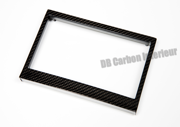 Carbon trim frame for aftermarket double DIN radio/navigation units. For the Porsche 986 Boxster.