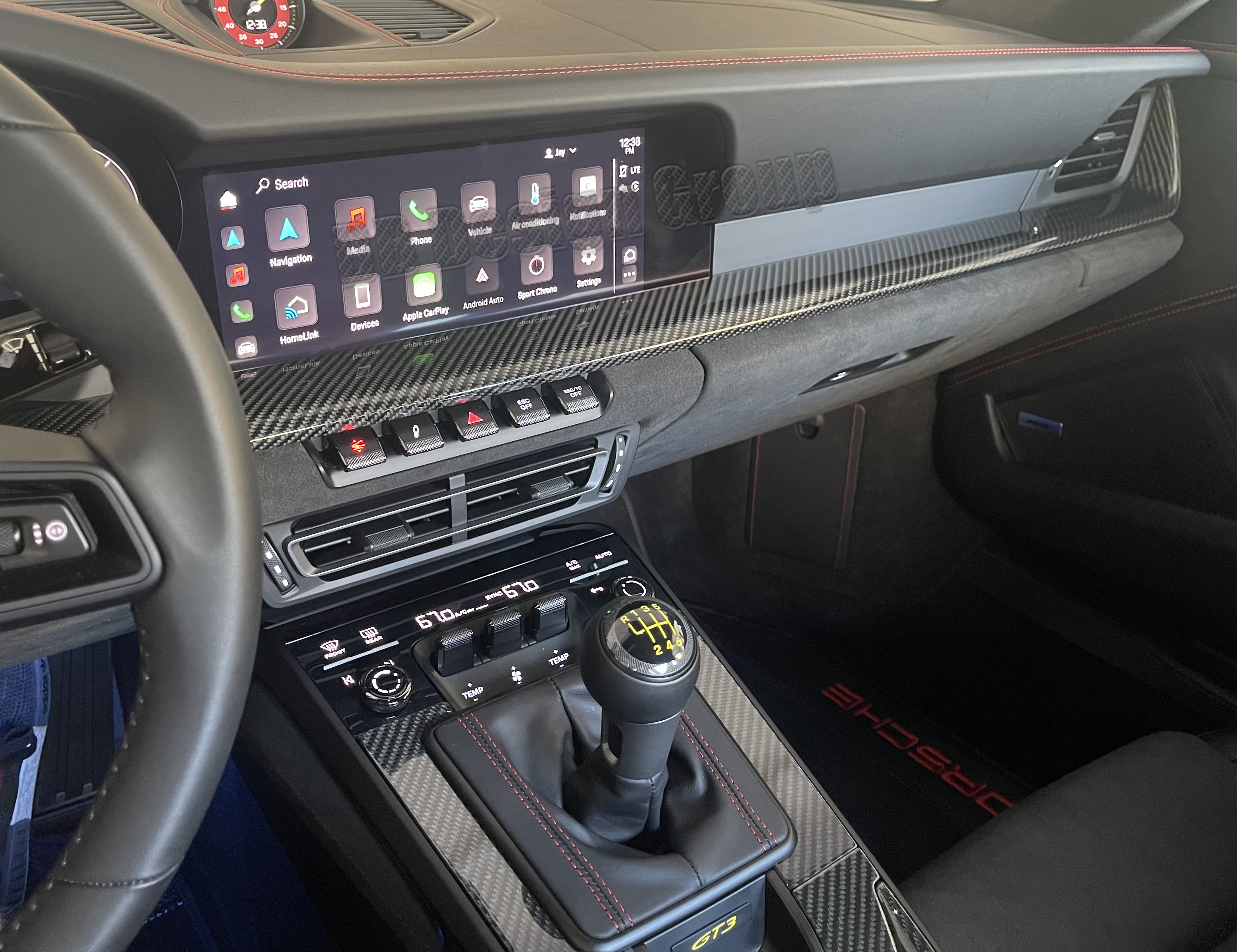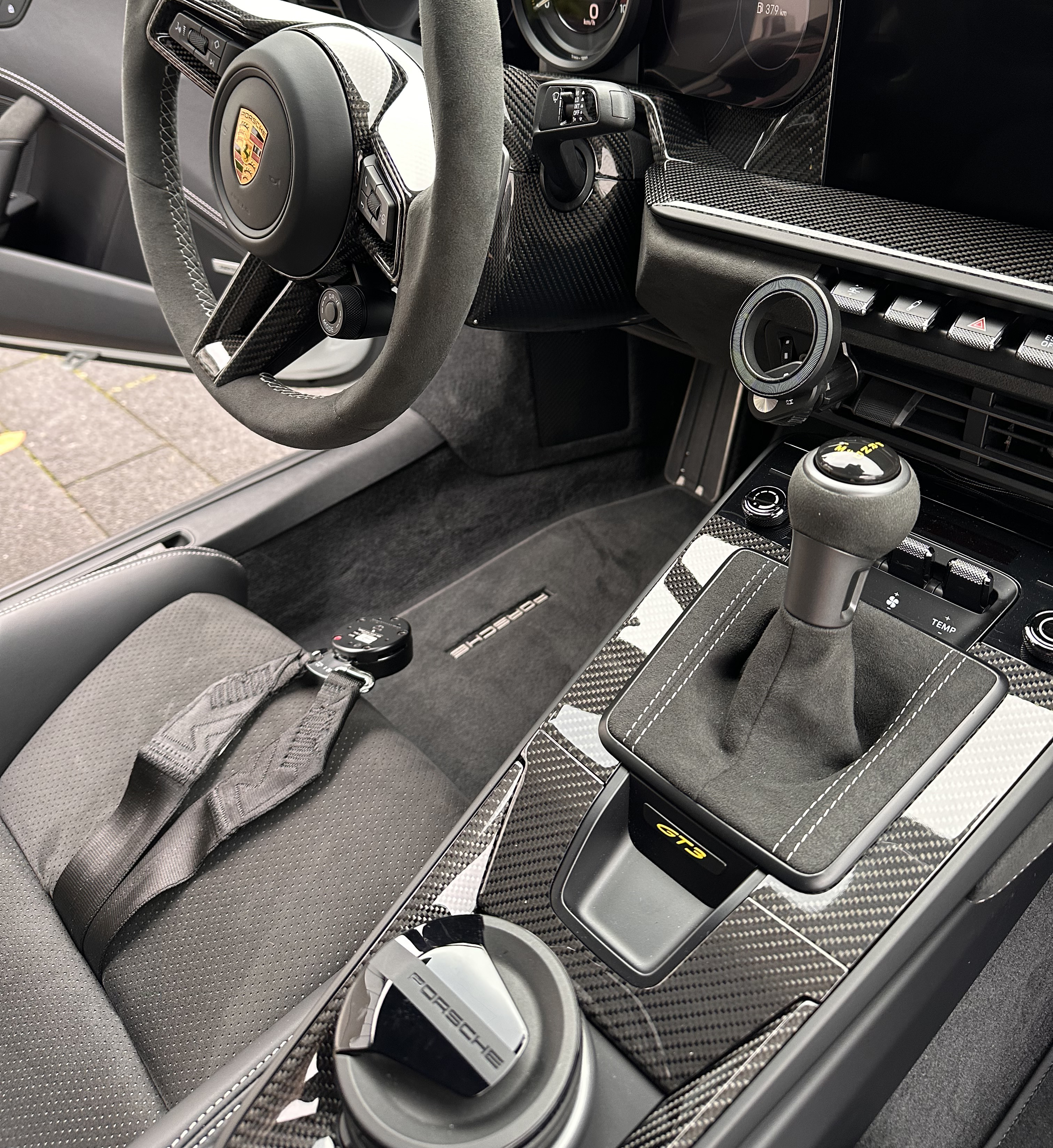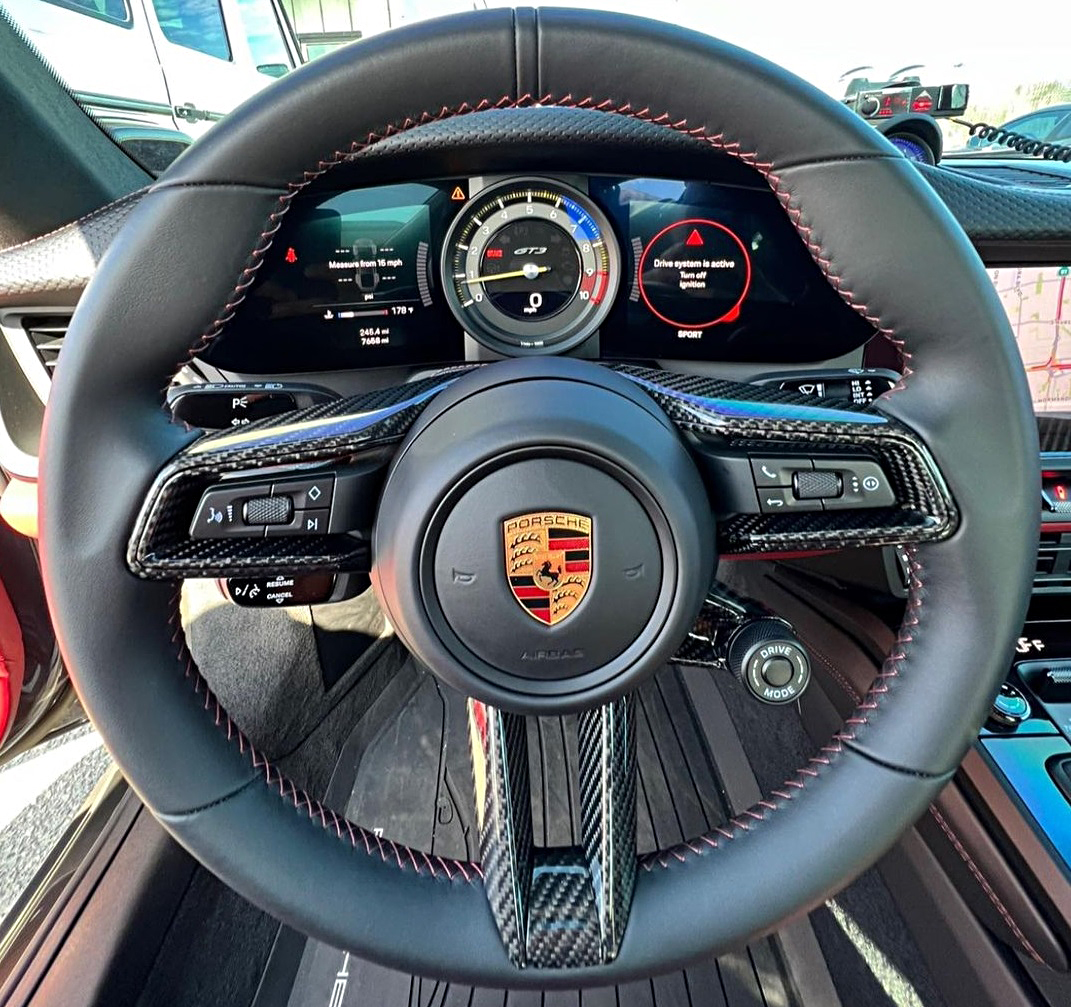 For the Porsche 992 GT3 and GT3 touring we offer carbon interior parts, on the dashboard the trim linings on drivers and passengers side, the air vents, the light switch, chrono clock housing and defrost trim panel; as well as the center console trim insert. On the door panels you´ll find with us the trim linings, window switch trim and side mirror covers, furthermore our door sills and the steering wheel with attachment parts, like the steering wheel trim arm, PDK shift paddles, inserts and many more, after customer specifications.